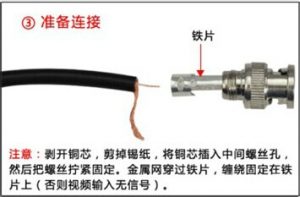 1、剝線:剝線時將同軸電纜外層保護膠皮刺去1.5cm,小心不要割傷金屬屏蔽線,再將芯線外的乳白色透明絕緣層剝去0.6cm,使芯線裸露。