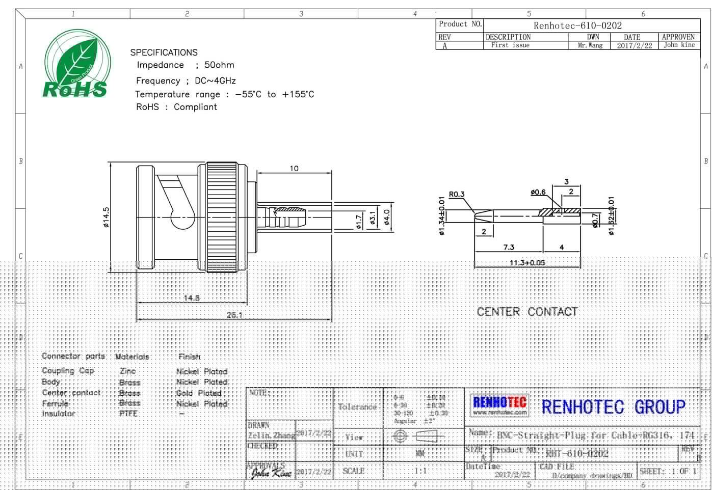 | 頻率范圍 | 50 ohm 為 0~4 GHz |