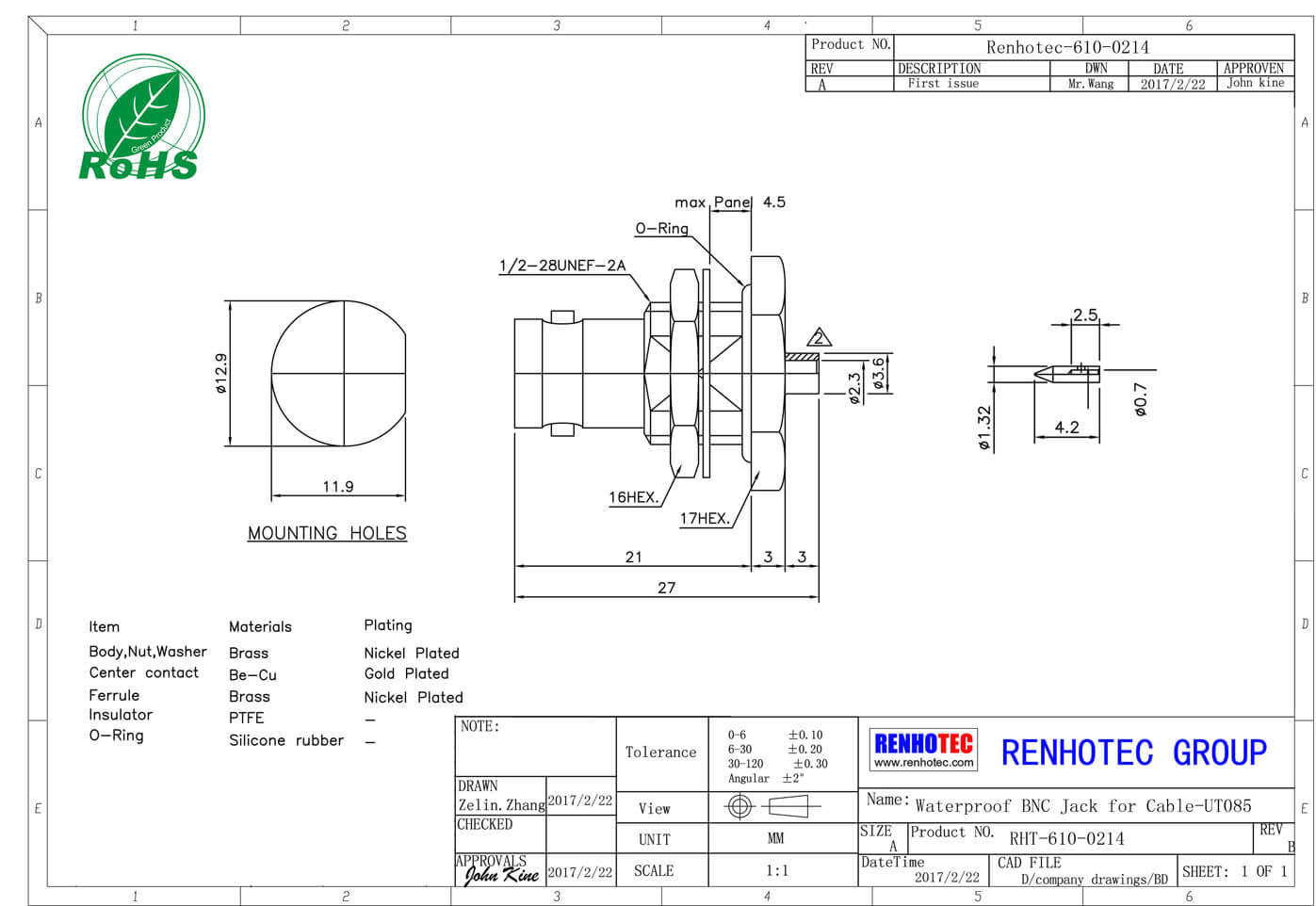 | 溫度范圍 | Teflon -55℃~+155℃ / POM -40℃~+60℃ |