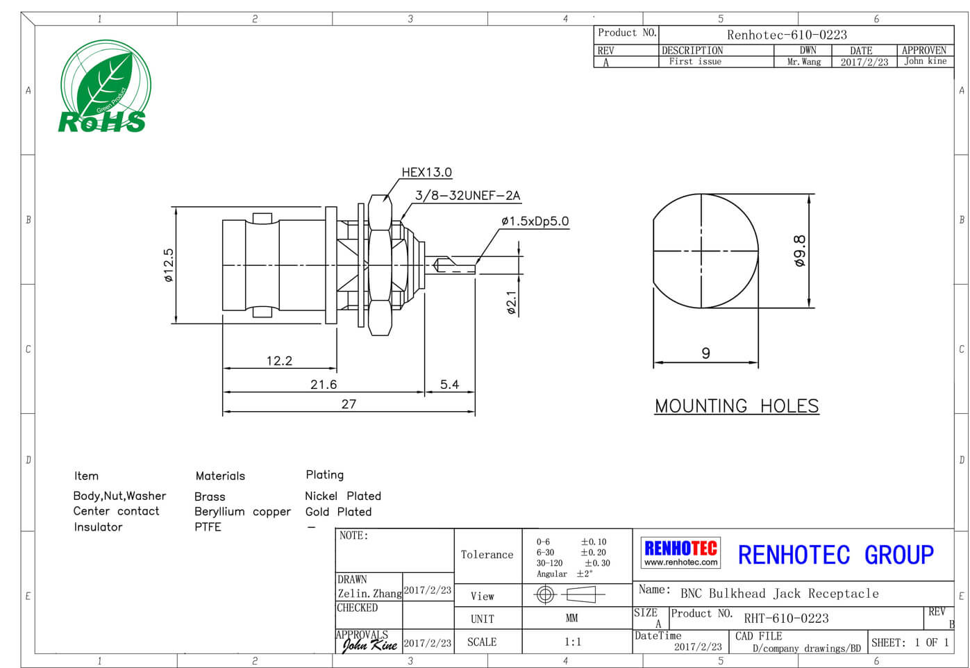 | 中心接觸電阻 | ≦ 1.5 mΩ (Milliohms max.) |