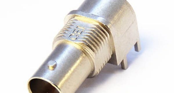 75歐BNC母頭連接器彎式前鎖穿墻鍍鎳插孔接PCB板